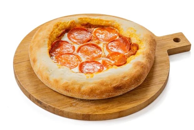 Ингредиенты Пшеничная мука 400 г Вода 260 мл Сухие дрожжи 3 г Сахар 10 г Оливковое масло 40 мл Помидоры пелати 400 г Чеснок 1 зубчик Репчатый лук 50 г Орегано ¼ чайные ложки Базилик 20 г Сыр моцарелла 100 г Пепперони 50 г Соль по вкусу Молотый черный перец по вкусу 1.Подготовить все ингредиенты. 2..Смешать воду комнатной температуры, 8 грамм соли и 2 столовые ложки муки. 3.Добавить в смесь дрожжи и сахар. Еще раз размешать. 4.Вмешать оставшуюся муку и вымесить тесто. Тесто можно вымешивать вручную или стационарным миксером с насадкой крюк. 5.В конце добавить 15 мл оливкового масла. 6.Сформировать из теста шар и положить в миску, смазанную оливковым маслом. Накрыть пленкой или влажным полотенцем и оставить в теплом месте на 1,5–2 часа. 7.Чтобы тесто получилось воздушным, его важно правильно обмять. Для этого взять тесто обеими руками за середину и приподнять (оно должно сложиться вдвое). Далее хлопнуть им об стол. Повернуть на 90 градусов, снова приподнять и хлопнуть. Повторять до тех