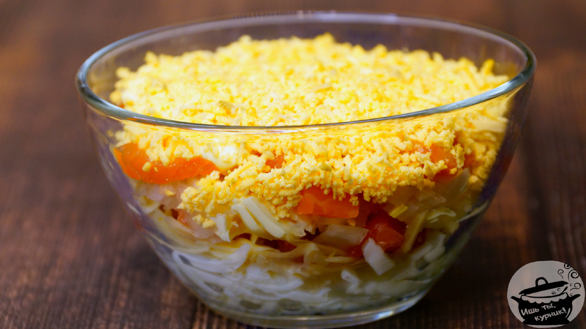 Салат "Мимоза" появился в 1970-х годах, его рецепт впервые в печатном виде был приведён в журнале "Труд". Салат «Мимоза» приготовить весьма просто. Возьмите банку лосося, банку майонеза, небольшую луковицу, 100 г сливочного масла, 100 г сыра, 5 сваренных вкрутую яиц. Все это укладывается в небольшую салатницу слоями. 1-й слой – яичные белки, натертые на крупной терке; 2-й сыр, натертый на мелкой терке; 3-й – ½ банки лосося; 4-й – ½ банки майонеза; 5-й – натертое сливочное масло; 6-й – мелко нарубленный лук; 7-й – ½ банки лосося; 8-й – ½ банки майонеза; 9-й – натертые на мелкой терке яичные желтки.