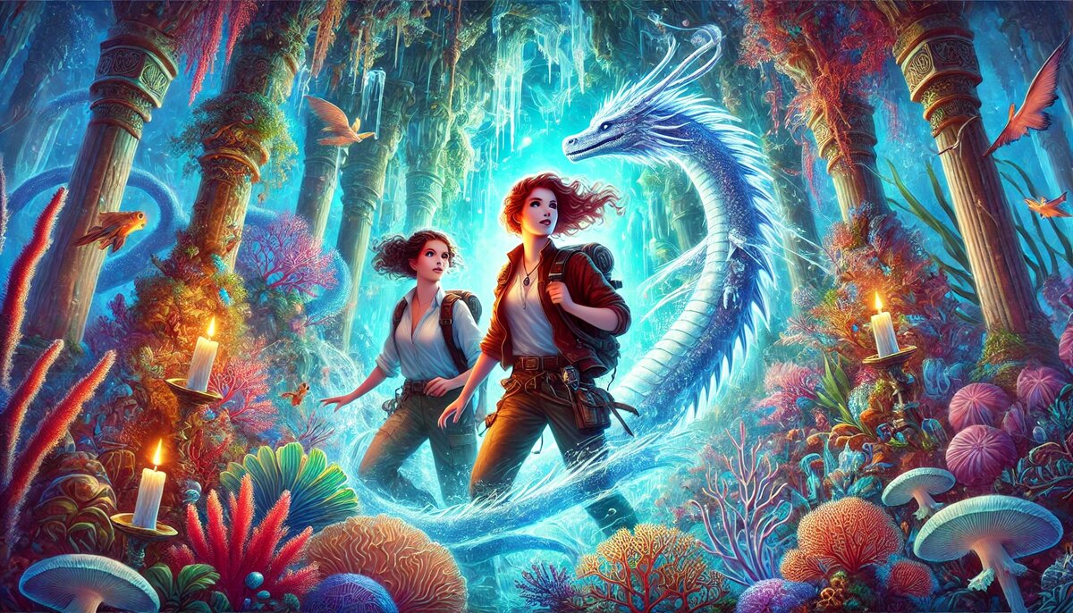 Мы тепло попрощались с водным драконом и, взявшись за руки, вернулись в пещеру. Шагнули в портал и вот мы уже снова под водой в Акварельном мире.