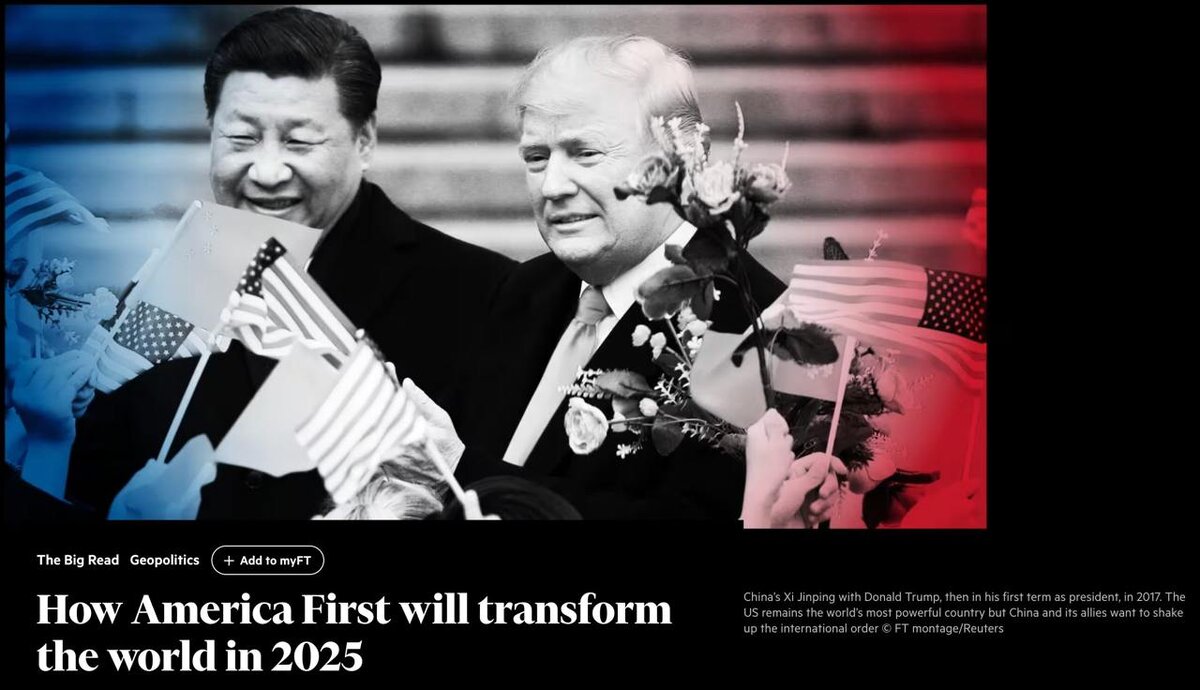 США молча выделяют России и Китаю сферу влияния в их регионах. Америка сосредотачивается на утверждении доминирования в своем регионе – отталкивает Мексику и Канаду, стремится вернуть Панамский канал и получить контроль над Гренландией. Трамп навязывает Украине мирное соглашение без сопроводительных гарантий безопасности. Санкции против России ослабляются, а Путина приглашают на ужин ко Дню благодарения в Мар-а-Лаго.