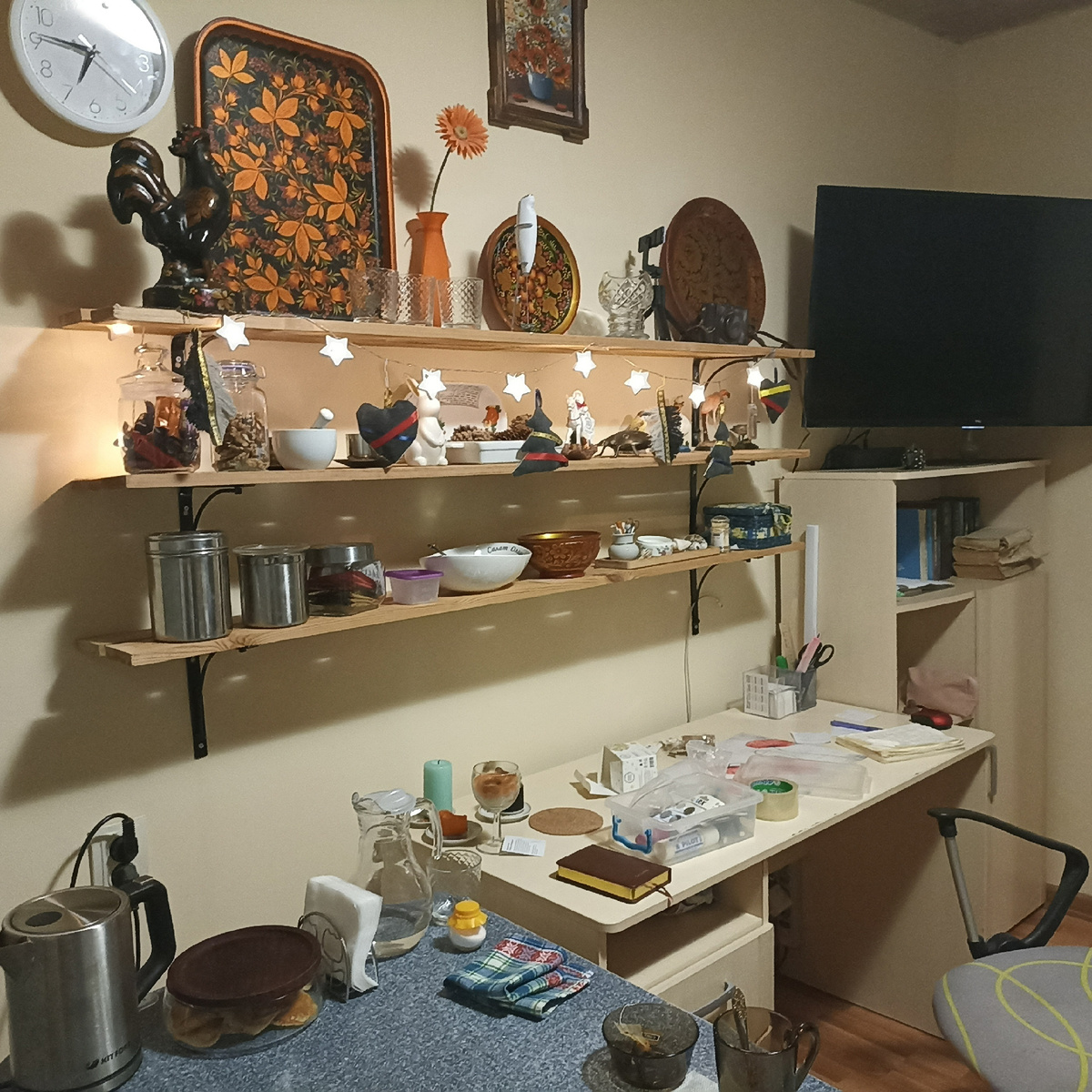 Каждый год с началом зимы меня пробивает на что-то сделать ручками для украшения дома. То есть заняться тем, что называется хобби - связать, сшить, вышить. Наверное это наследие предков - обуютить свою пещеру к зиме. Последствия таких приступов лежат и висят по всей квартире и не раз я в порыве энтузиазма тратила изрядную сумму на покупку материалов для этого дела. Причем как-то незаметно это происходит: ниточек купила, кусочек ткани, а потом как посчитала, как удивилась! Да на эту сумму я могла бы купить, допустим, скатерть в недешевом магазине, да не одну и еще на сдачу пару салфеточек! Такое со мной приключилось лет десять назад: задумала салфетки вязаные на прикроватные тумбочки и скатерку. Видела в продаже в хорошем магазине подобные фабричные и загорелось. Да так загорелось что до почесухи. Спать не могу, хочу! Сначала купила нитки натуральные, потом ткань на скатерть, прорезала дырки в середине кустка ткани, связала серединку, вшила, края обвязала каймой. Трудилась как пче