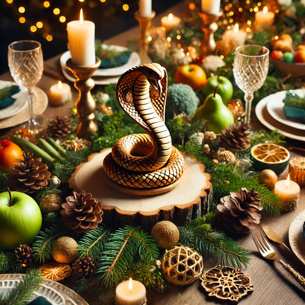 Новогодний стол — это не просто угощение для гостей, но и символ изобилия, гармонии и энергии, которые вы хотите привлечь в свою жизнь в новом году. Правильный выбор блюд, сервировки и цветовой гаммы поможет создать атмосферу, наполненную позитивной энергией, и привлечь успех, здоровье и счастье. В предыдущих статьях мы уже говорили о том, как правильно встретить Новый год «Как встретить Новый год 2025: советы и ритуалы», а также что надеть на новогоднюю ночь «Одежда и украшения для новогодней ночи 2025». Теперь поговорим о том, как правильно подготовить новогодний стол в гармонии с символикой 2025 года. 2025 год проходит под символами Зеленой Деревянной Змеи и Жалящего Шершня, (вставить ссылку на статью) что накладывает свои особенности на выбор блюд. Эти символы ассоциируются с природными элементами, чистотой и изобилием. Свежие овощи и зелень. Змея, как символ мудрости и гармонии, предпочитает легкие, натуральные блюда. Добавьте на стол яркие салаты с зеленью, свежими овощами и нату