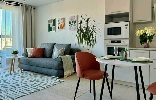 Улучшаем обстановку с помощью приемов хоумстейджинга Ирина Куликова и Екатерина Щукина из студии «Хоумстейджинг с любовью» преобразили интерьер однокомнатной квартиры всего за один день. Показываем эффективные и несложные приемы из проекта, которые помогут и вам обновить интерьер с минимальными тратами времени и денег. Бюджетно освежить обстановку можно с помощью маленького журнального столика. Этот универсальный предмет мебели гармонично дополнит зону отдыха — на него удобно поставить чашку чая, положить телефон или пульт и даже поставить ноутбук. С помощью новых стульев можно привнести в интерьер новые краски и настроение. Это отличное решение для тех, кто хочет преобразить комнату, но не готов на такие радикальные изменения, как поклейка новых обоев или перекраска стен. Спокойные и нейтральные по оформлению интерьеры нуждаются в усложнении. Фактурный ковер, мягкие шторы, разноцветные подушки и объемный плед делают помещение более объемным и выразительным. Еще один способ освежить ко
