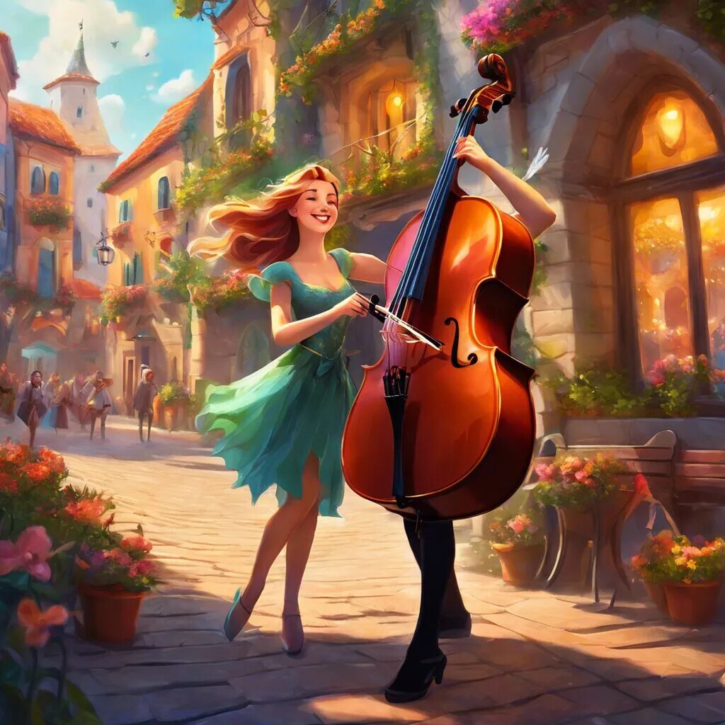 В одном маленьком городе жил-был талантливый музыкант по имени Артем. Он играл на виолончели так красиво, что все жители собирались слушать его музыку на площади. Каждый раз, когда Артем начинал играть, его мелодии уносили людей в мир волшебства и сказок. Однажды, когда Артем возвращался домой после концерта, он заметил в парке старую, пыльную виолончель. Она лежала под деревом, и, казалось, ждала его. Артем подобрал инструмент и, несмотря на его состояние, решил попробовать сыграть на нем. Как только он коснулся струн, из виолончели посыпались разноцветные искры, и вокруг него закружились волшебные феи! «Спасибо, что нашел нас!» — сказали феи. «Эта виолончель — не простая, а волшебная! Она может исполнять любую музыку, которая сделает людей счастливыми». Артем был очень удивлен, но радостно согласился. Вместе с феями он начал репетировать. Каждый день они устраивали концерты, и их волшебная музыка привлекала всех жителей города. Люди танцевали, смеялись и забывали о своих заботах. Одн