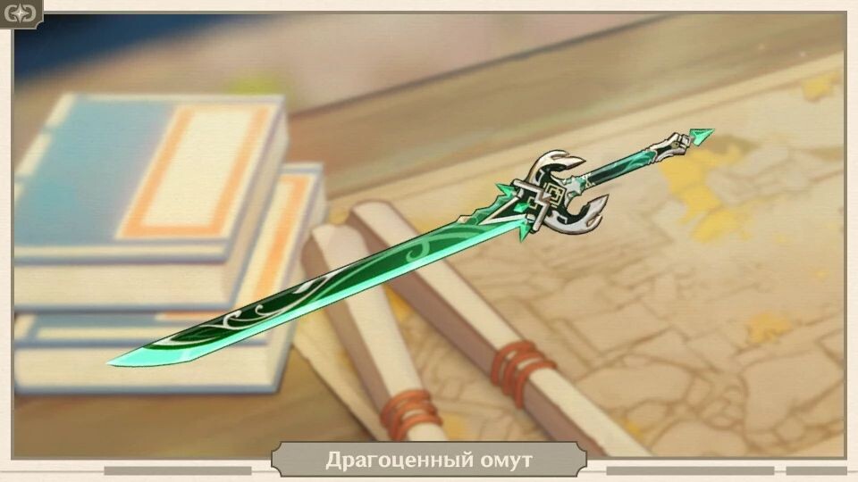 ㅤВ игре Genshin Impact часто выпущенное оружие объединяют в серии. Такое оружие связано историей, тематикой и дизайном. В этой статье мы рассмотрим оружие из серии Драгоценный нефрит, в которую вошли: одноручный меч Драгоценный омут, копьё Нефритовый коршун и катализатор Великолепие лазурного свода. «Ритуальный меч, искусно вырезанный из чистейшего нефрита и покрытый изящными гравировками. Иногда кажется, что при взмахе им можно услышать тихий вздох ветра» Пассивная способность с 1 по 5 пробуждение: Добродетель защитника ㅤУвеличивает HP на 20-25-30-35-40%. Также даёт бонус атаки, равный 1,2-1,5-1,8-2,1-2,4% от макс. HP экипированного этим оружием персонажа. ㅤДрагоценный омут — меч, наделяющий носителя внушительным бонусом шанса крит. попадания в 44,1%, что делает его достаточно востребованным. Оружие также увеличит владельцу HP и даст бонус к силе атаки, в проценте от макс. HP персонажа. Общее количество материалов, необходимое для прокачки Драгоценного омута до 90 уровня: Материалы во