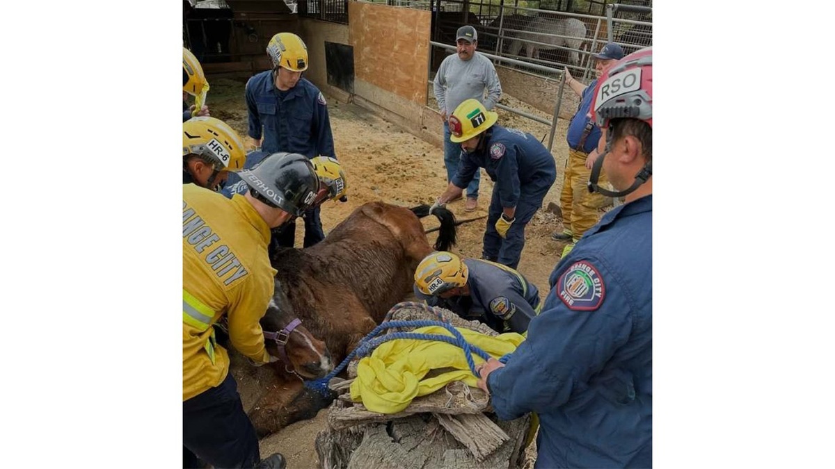В городе Ориндж (штат Калифорния, США) пожарные провели одну из самых длительных спасательных операций. На конюшне по улице Норт Дрессаж они обнаружили 30-летнюю лошадь, которая застряла под забором и не могла выбраться.