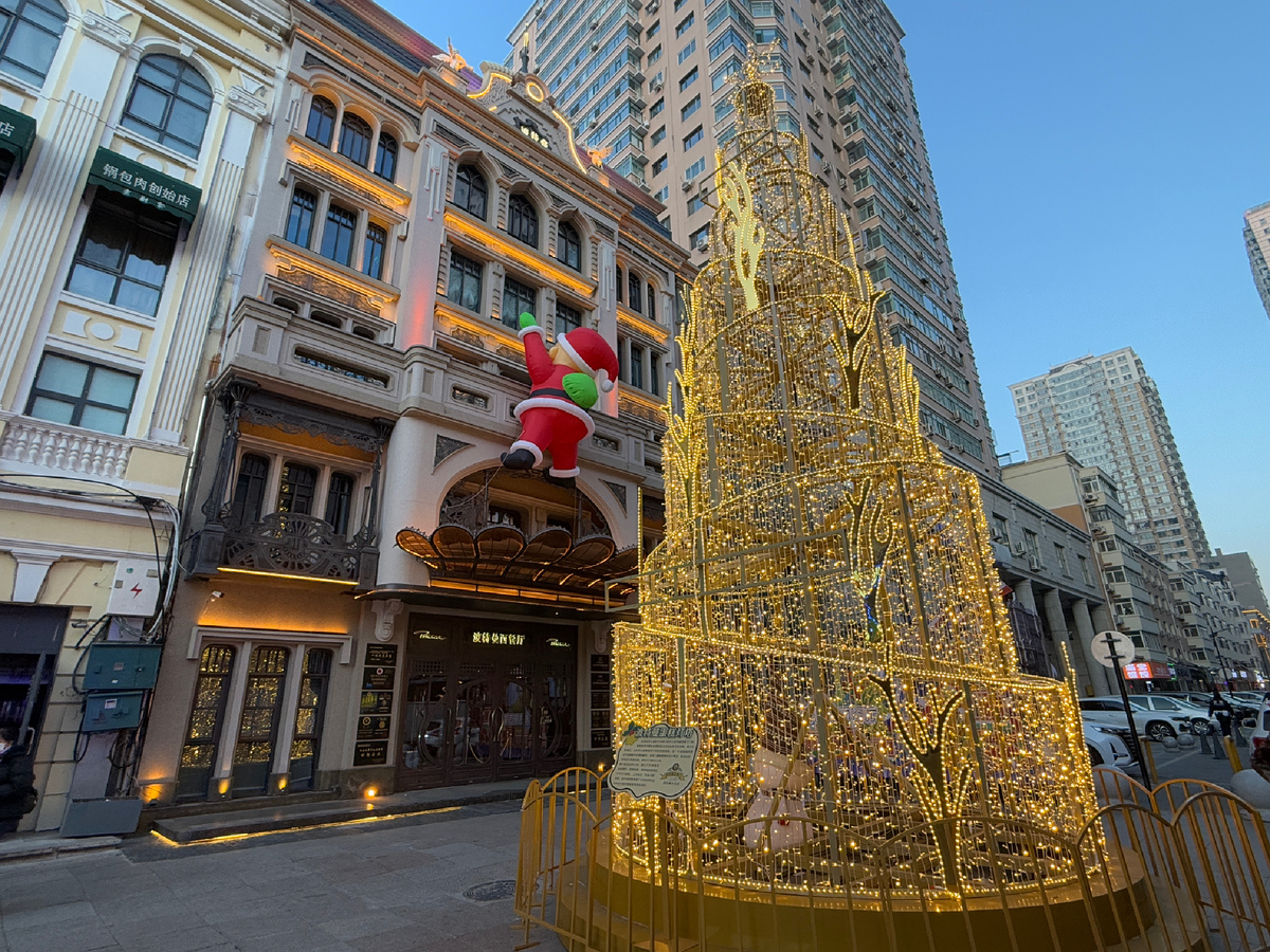 Я продолжаю нагнетать новогоднее настроение, чтобы получить праздника сполна я отправилась в самый русский город Китая - в Харбин. Город в декабре уже почти при полном параде, но что-то еще доделывают и народа, говорят, еще немного (страшно представить, как тогда выглядит много!). Так что атмосферой я напиталась сполна. Самое главное новогоднее пространство - это улица Zhōngyāng Dàjiē, все русские ее называют Арбатом. Действительно, сходство есть - красивые дома в разных стилях, тьма народу, масса магазинов и ресторанов, только уличных художников нет, их бы тут просто затоптали. К празднику улицу накрыли фантастическими световыми инсталляциями, а еще магазины и рестораны делают крутые фотозоны. Главные гастрономические специалитеты Харбина - колбаса и хлеб, и ими активно украшают елки. Ледяные фигуры на Арбате еще только начали делать, так что совсем красиво будет к 5 января - ко дню официального открытия Фестиваля льда и снега. Парк Сталина на набережной тоже еще о