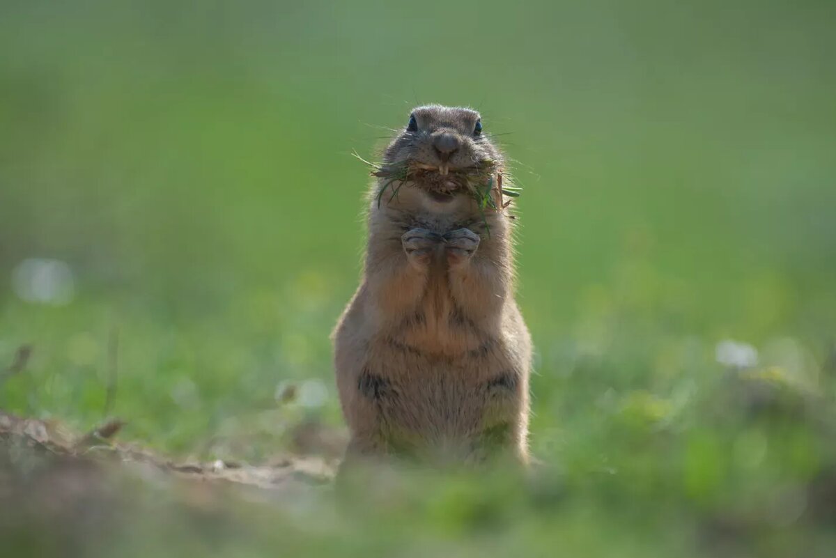 В преддверии праздника я хочу показать лучшие снимки, которые сделал за уходящий год, и конечно рассказать, кто на них запечатлен и как его удалось сфотографировать. На заглавном снимке – малый суслик, кадр сделан в апреле, как можно догадаться по ярко-зеленой траве. К животному я подползал по-пластунски, чтобы получился нужный ракурс. Как мне кажется, это была беременная самка суслика, во всяком случае, она была не очень осторожна и продолжала набивать рот травой и корешками, не обращая внимания на фотографа. На втором снимке – деревенская ласточка на лотосе. Пару лет назад я уже делал подобный снимок, тогда он занял второе место в номинации «Птицы» в фотоконкурсе «Дикая природа России». Деревенские ласточки гнездятся недалеко от этих зарослей лотоса, и взрослые птицы время от времени присаживаются на нераскрывшиеся бутоны, чтобы отдохнуть. Сизоворонка в брачном наряде, также весенний снимок. Эти птицы чаще всего садятся на провода или стога сена, но мне не нравятся антропогенные объе