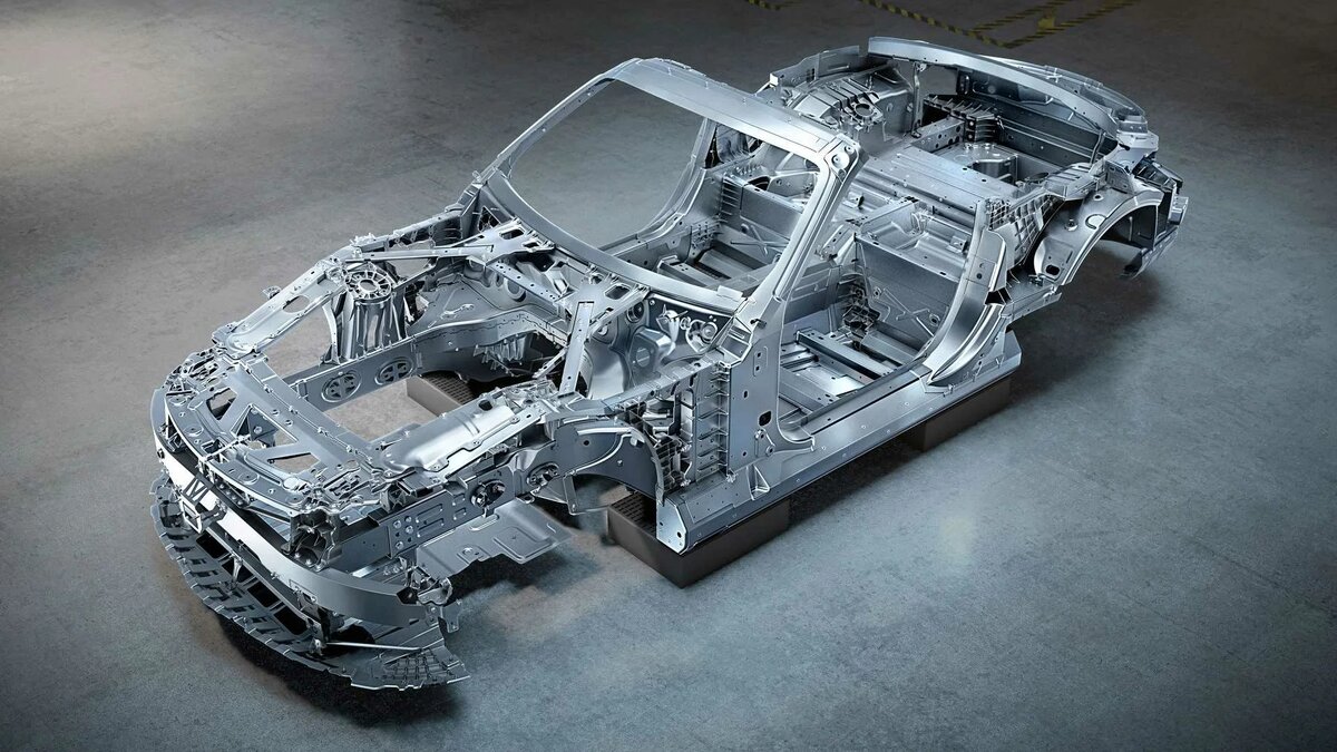 Несмотря на активное внедрение лёгких сплавов, высокопрочная сталь по-прежнему остаётся одним из основных материалов. Особые марки стали делают кузов лёгким, но при этом не теряют необходимой прочности, что важно для пассивной безопасности. - Алюминий