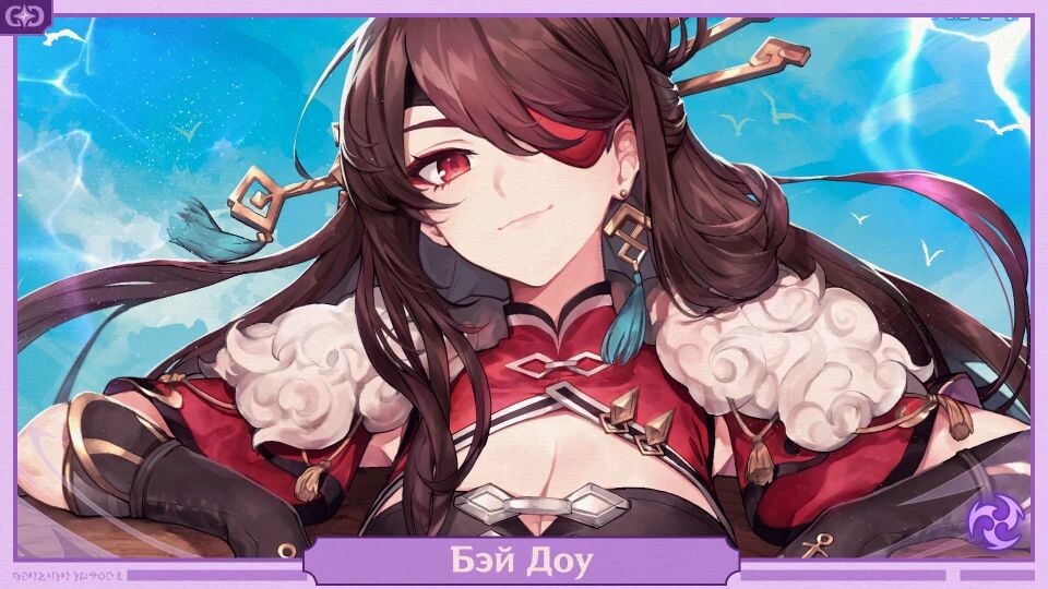 ㅤБэй Доу — четырёхзвездочный Электро персонаж, использующий двуручный меч. Может предоставить отряду как урон из «кармана», так и щит, что делает её конкурентоспособным саб ДД.