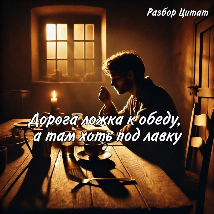 Поговорка «Дорога ложка к обеду, а там хоть под лавку» указывает на важность своевременной поддержки и помощи. В центре её смысла — идея, что даже самый ценный жест может утратить своё значение, если он запоздал. Здесь поднимается проблема упущенных возможностей: как ложка, которая становится важной лишь в момент обеда, так и помощь или внимание становятся ценными только в нужный момент, а не после. Пословица пропитана юмором и лёгкой иронией — ведь порой запоздалая поддержка не приносит желаемого эффекта и остаётся лишь пустым жестом. 😊