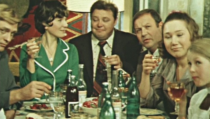 В связи с летними съёмками некоторых сцен застолья, режиссёру пришлось в срочном порядке искать традиционные новогодние блюда посреди лета, что было не так уж и просто. К тому же дублей было не 2, не 3 и не 4, а еды при этом не так уж и много. В общем, приходилось выкручиваться любыми способами и «есть» как можно медленнее, при этом, чтобы не возникало ощущения, будто вся еда на столе осталась совсем нетронутой.