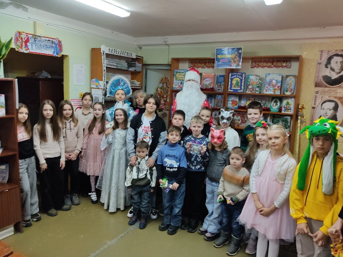 Новый год – яркий, загадочный, удивительный праздник. Время сказочных чудес и волшебства с подарками, сюрпризами и исполнениями желаний. Есть в новогоднем празднике какая-то сказка, а потому не случайно, что для многих он самый светлый и любимый. 29 декабря, в преддверии Нового года, Центральная детская библиотека распахнула двери для своих маленьких читателей и их родителей, пригласив на зимнее приключение «Под Новый год, как в сказке, полным-полно чудес!». Библиотекарь познакомила юных читателей с историей возникновения праздника: откуда пошла традиция наряжать ёлку, с необычными фактами о самом любимом и самом снежном празднике года и с новогодними традициями разных стран. Сама Зимушка-Зима заглянула на радостный детский смех и веселье. Ребятам было предложено разгадать «зимние загадки», принять участие в мультвикторине «Зимние сказки» и игре «Пройди по льдинам». Символ наступающего года Змея – Скарабея, персонаж сказки «Волшебное кольцо», прочитала новогодние пожелания от сказочных