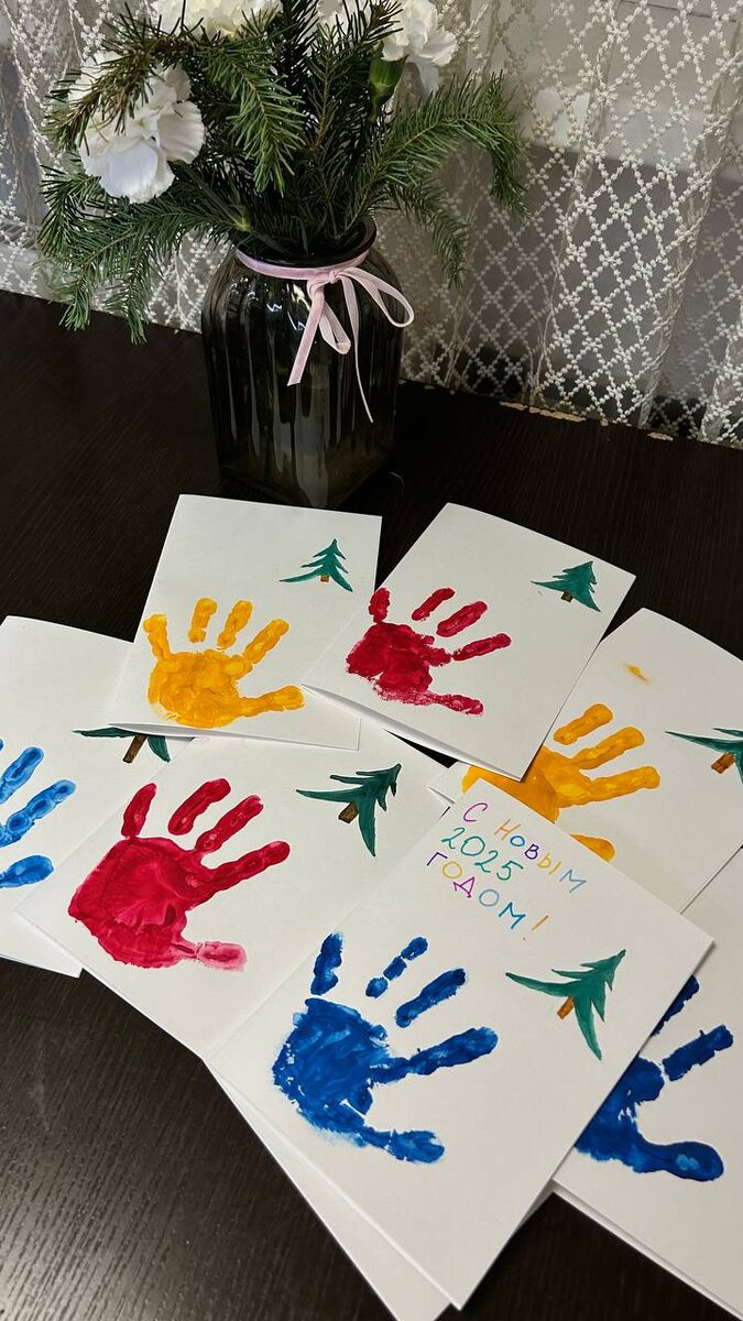 Мы с Сёмой делаем подарки для близких. Привлекаю его к этому, чтобы испытывал счастье вдвойне и от получения подарков и от процесса дарения🎄 Одна из открыток обязательно для мамы и папы😁 А для меня это еще один повод заняться чем-то интересным вместе с ребёнком. Потому что «играть в машинки» - не моё 🤣 Рисование + одно дело, которое увлекает 2 стороны в копилку👍 С Наступающим Новым Годом, замечательные люди!🫶