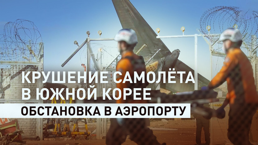 Работа спасателей на месте крушения самолёта в Южной Корее