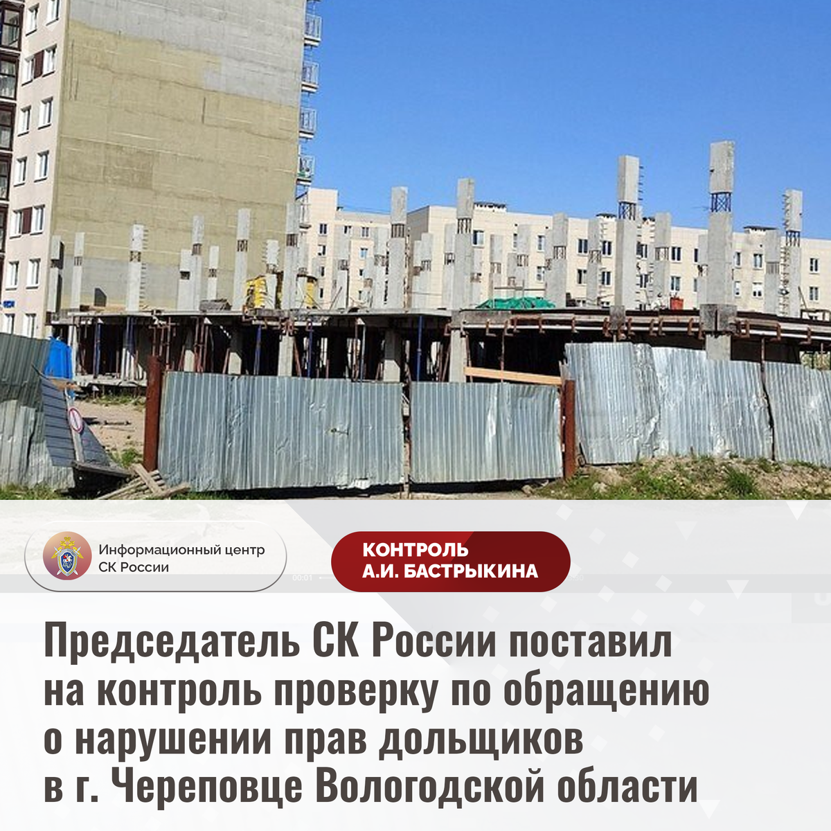 Председатель СК России поставил на контроль проверку по обращению о нарушении прав дольщиков в г. Череповце Вологодской области