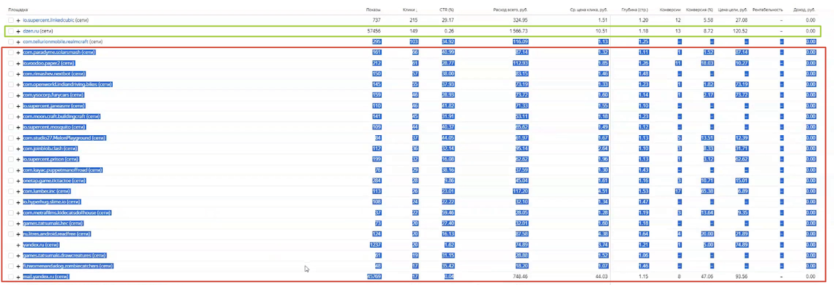 Таргетинг на такие площадки, как Дзен, и внутренние сети Яндекса передают данные таргетинга. Однако на некачественные площадки эти данные не передаются. Вне зависимости от ваших настроек, реклама продолжает показываться на низкокачественных площадках. Для Яндекса это выгодно, так как все это позволяет им монетизировать трафик.