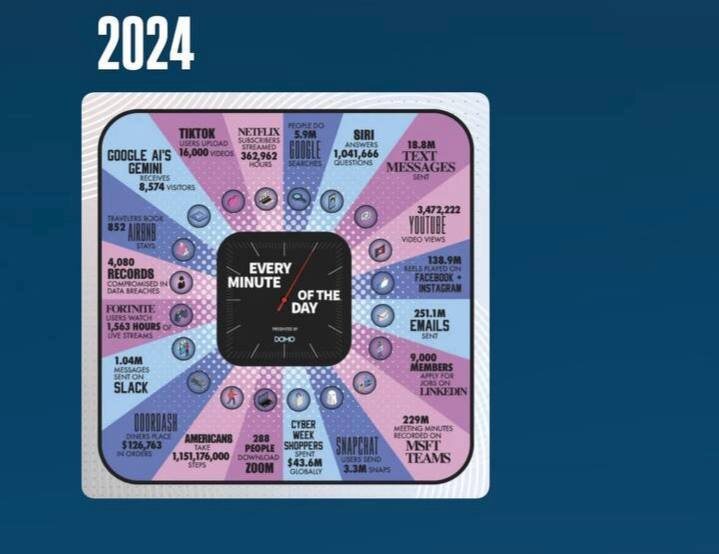 Каждую минуту в 2023 и 2024 годах в мире происходило следующее…