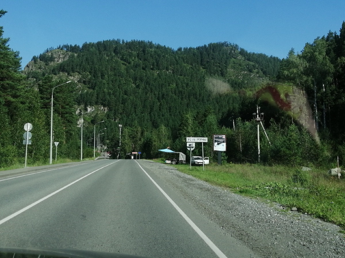 В 10.15 подъезжаем к селу Усть-Муны, расположенному у устья реки Муны. После выезда из населенного пункта - знак ограничения скорости «70».