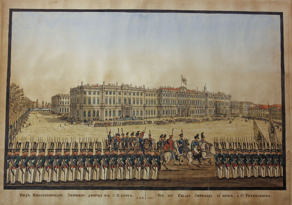 В конце декабря 1837 года в Зимнем дворце случился пожар. Император Николай I был в это время в театре. Ему немедленно сообщили о случившемся. Когда он приехал, огонь охватил уже почти половину огромного здания. Император проявил недюжинную выдержку и мужество и сам всем руководил. Прежде всего, он распорядился увезти в Аничков дворец своих детей, которые все еще находились в Зимнем, затем лично обошел дворец, чтобы точно узнать, что горит, не раз при этом рискуя жизнью. Затем он приказал гвардейцам выносить из пока не пострадавших от огня залов мебель, картины известнейших мастеров, малахитовые изделия, фарфоровые вазы, стенные и столовые часы, бронза, другие ценнейшие вещи, - все как попало лежало на снегу у Александровской колонны. Часы с музыкой, приведенные в ход своим падением, заиграли вдруг прелестную мелодию, вступая в ироническую противоположность с окружающей сценой. На пожаре были спасены в совершенной целостности вся богатая утварь, великолепная ризница и все образа с их д