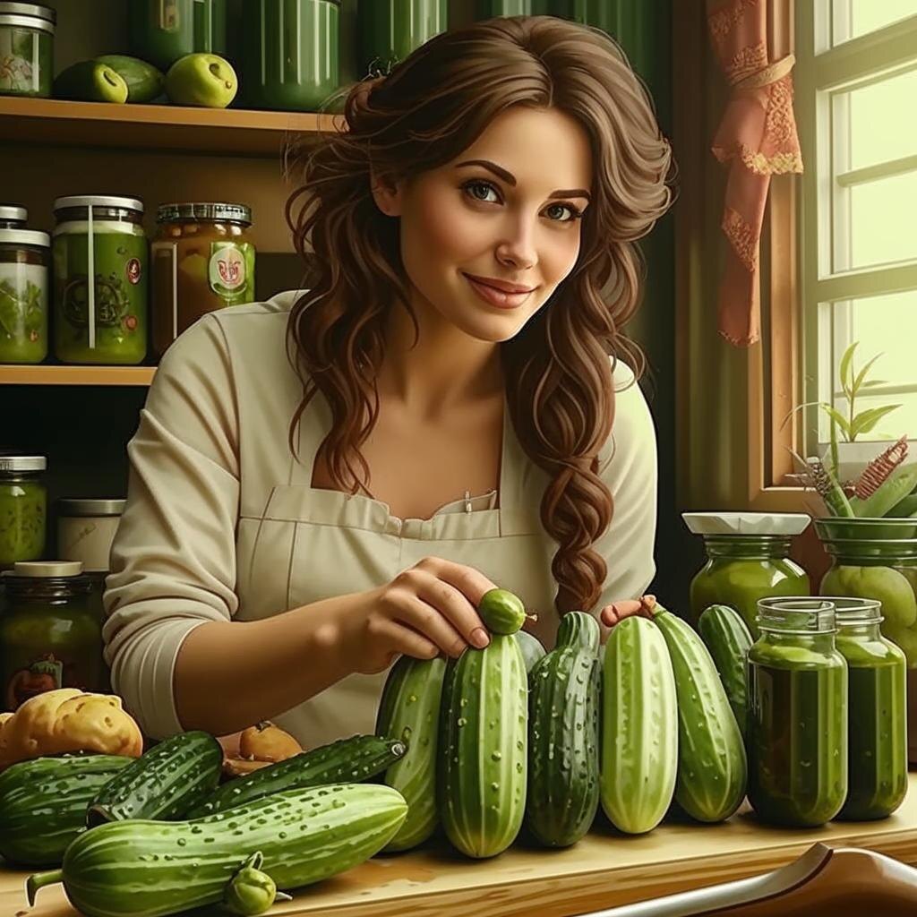В небольшом, но уютном городке, где летние вечера были наполнены ароматом свежескошенной травы и звуками щебетания птиц, жила тётушка Оксана. Она славилась своим кулинарным мастерством и особенно — волшебными солеными огурцами. Все соседи знали, что именно её огурцы способны сделать любой праздник особенным. Каждое лето, когда солнце начинало щекотать землю, тётушка Оксана принималась за своё любимое дело. Она с любовью выбирала самые сочные и крепкие огурцы на рынке, выбирая только те, что светились зеленью и обещали хрусткость. Затем она отправлялась домой, где её маленькая, но уютная кухня наполнялась волшебством. Пока она мыла огурцы, её руки танцевали в ритме музыки, звучащей из старого радиоприемника. Тётушка Оксана знала, что для приготовления настоящих волшебных огурцов нужно не только мастерство, но и немного магии. Она всегда говорила: «Чтобы соленья получились вкусными, нужно добавлять щепотку любви». Тётушка начинала с того, что тщательно подготавливала специи. Чеснок,