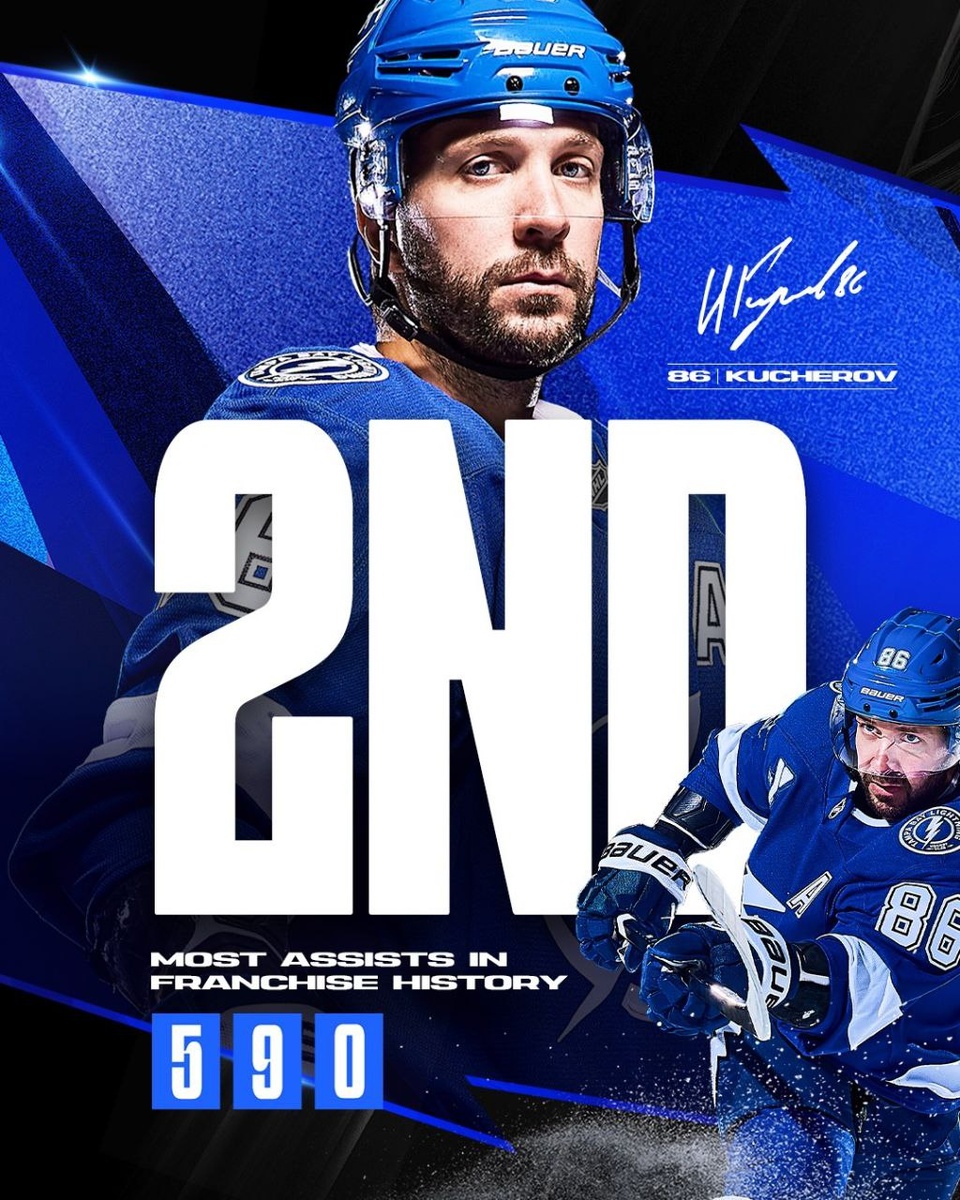 Сделав 2 голевые передачи, Кучеров стал вторым лучшим ассистентом за всю историю «Тампы», обойдя Мартена Сен-Луи.