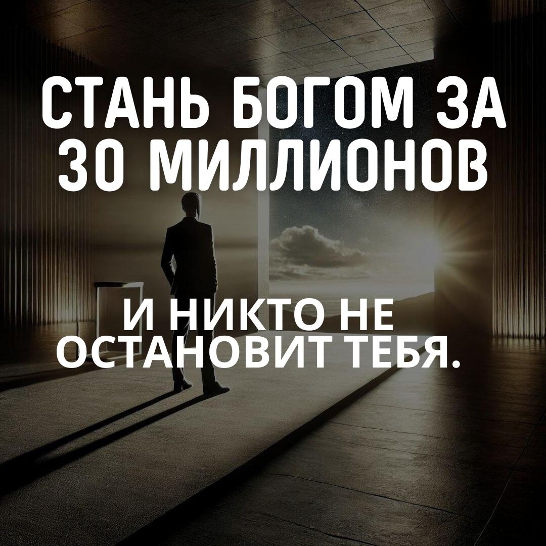 Это не для всех. Это для тех, кто знает, что значит играть по-крупному. 30 миллионов — и ты меняешь свою жизнь. Не просто меняешь. Ты превращаешь её в то, о чём другие даже боятся мечтать. Что ты получишь? ✔️ 30 лет работы с Богом. Личной, направленной, трансформирующей. ✔️ Абсолютный контроль над своей реальностью. ✔️ Доступ к состоянию, где нет границ. Никаких. Мы будем работать с твоими мечтами, целями, твоим будущим. Ты хочешь миллиард? Мы сделаем это. Ты хочешь просветление? Это тоже будет. Ты хочешь построить что-то, что изменит мир? Мы возьмёмся за это. Зачем это тебе? Потому что ты устал от посредственности. Ты знаешь, что можешь больше, но тебе нужен тот, кто поможет увидеть весь масштаб твоей силы. 30 миллионов — это не цена. Это выбор. Почему сейчас? Потому что 2025 уже на пороге. Ты можешь продолжить жить, как раньше. А можешь войти в новый год в состоянии, где ты — Бог своей реальности. Как это будет? Мы создаём стратегию твоей жизни. Я показываю тебе, как пробить любые