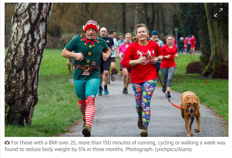 Человеку нужно заниматься спортом не менее двух с половиной часов в неделю, чтобы похудеть, — к такому выводу пришла группа британских ученых-эпидемиологов из Имперского колледжа Лондона. Физические нагрузки должны быть продолжительными, так как 150 минут, поделенные на короткие ежедневные занятия, скорее всего, не дадут результат, сообщила The Guardian со ссылкой на авторов исследования. Ученые сделали выводы на основе анализа 116 опубликованных ранее клинических исследований, в которых изучалось влияние физических упражнений на потерю веса, объем талии и количество жира в организме. В общей сложности в исследованиях были представлены данные почти 7000 взрослых с избыточным весом или ожирением, то есть с индексом массы тела (ИМТ) выше 25. Анализ результатов был опубликован в медицинском журнале Jama Network Open. Анализ показал, что вес, объем талии и количество жира в организме снижались по мере увеличения количества аэробных нагрузок в неделю. Тренировки продолжительностью менее 30