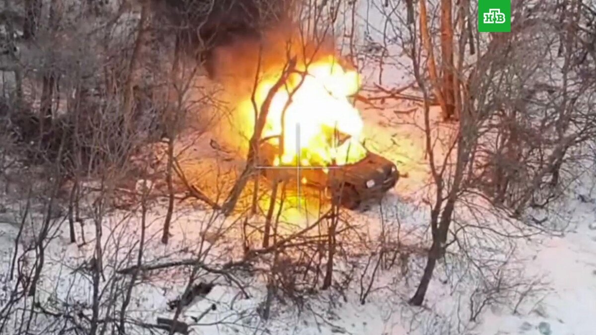 [ Смотреть видео на сайте НТВ ] Украинский пикап уничтожен российскими военными в Харьковской области, сообщили в Минобороны. Бойцы спецназначения группировки войск «Север» с помощью дрона обнаружили стоящий в лесу пикап ВСУ. Ранее он привез украинских военных для ротации на позиции. Обнаруженный пикап был оперативно уничтожен. На опубликованных Минобороны кадрах видно, как дрон врезается в машину, после чего та вспыхивает и сгорает практически дотла. [ Смотреть видео на сайте НТВ ]