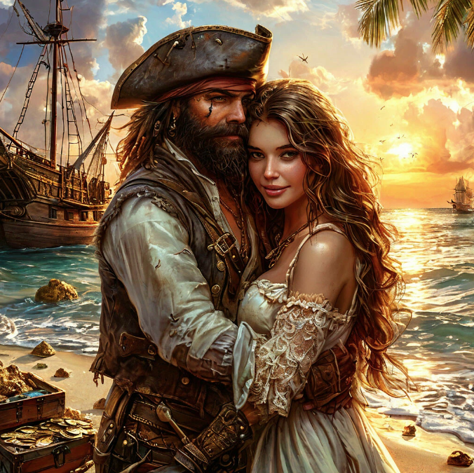 Ахой, друзья! Сегодня мы продолжаем наше захватывающее путешествие по волнам истории, где правили бал бесстрашные морские волки – пираты! Но помимо сражений, сокровищ и опасных приключений, в жизни пиратов было место и для романтических историй. Готовьтесь окунуться в мир страстей, интриг и любви на фоне бескрайних океанов! Не секрет, что любовь и предательство часто идут рука об руку. История пиратства знает немало примеров, когда страсть приводила к трагическим последствиям. Одна из таких историй связана с капитаном Джеком Рэкхемом и его возлюбленной Анной Бонни. Анна Бонни была отважной женщиной-пиратом, которая бросила вызов общественным нормам и отправилась в плавание вместе с Джеком. Их отношения были бурными и страстными, но закончились трагедией, когда Джек был схвачен и приговорен к смерти. Анна, узнав о его судьбе, якобы сказала: "Если бы ты сражался как мужчина, тебя бы не повесили как собаку!" Пример из фильма: В сериале "Черные паруса" показана сложная и напряженная связ