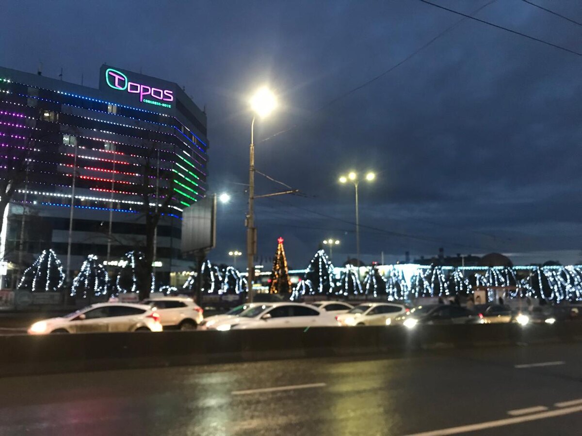 Типичный Ростовский "Новый Год". Снега нет. Сыро, серо. Серо, сыро. Только зенеленеет свежемонтированная Главная городская искусственная ель. Второ- и третьестепенные ели - они тоже еле-еле. "М" - это не "метро", а "Мануфактура", но мне кажется, что там замешан и "МакДональдс" ( в центре). А эта елка, как мне кажется, могла бы служить символом нашей зимы, с одной стороны - приукрашенная, а с другой стороны - обглоданная. Но зато - натуральная! Вот натуральных снеговиков в городе у нас нет нигде - от слова "совсем"! Все стараются добыть новогоднее настроение и поздравиться. Даже ростовские аппаратные косметологи и лазерные эпиляторы. Ведь у них есть свой новогодний скелетовик, не знаю, правда, натуральный или искусственный. Помогают создавать соответствующий настрой и свежесписанные и соответствующе расписанные поздравительные трамваи-кабриолеты, изредка курсирующие по городским маршрутам. Но, пожалуй, самый чудесный предновогодний подарок преподнесла сегодня природа, совершенно неож