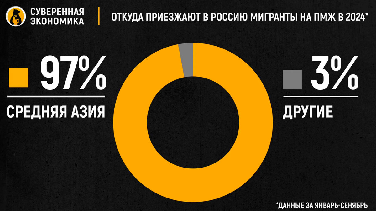 Около 97% миграционного прироста РФ в 2024 году обеспечили выходцы из Средней Азии