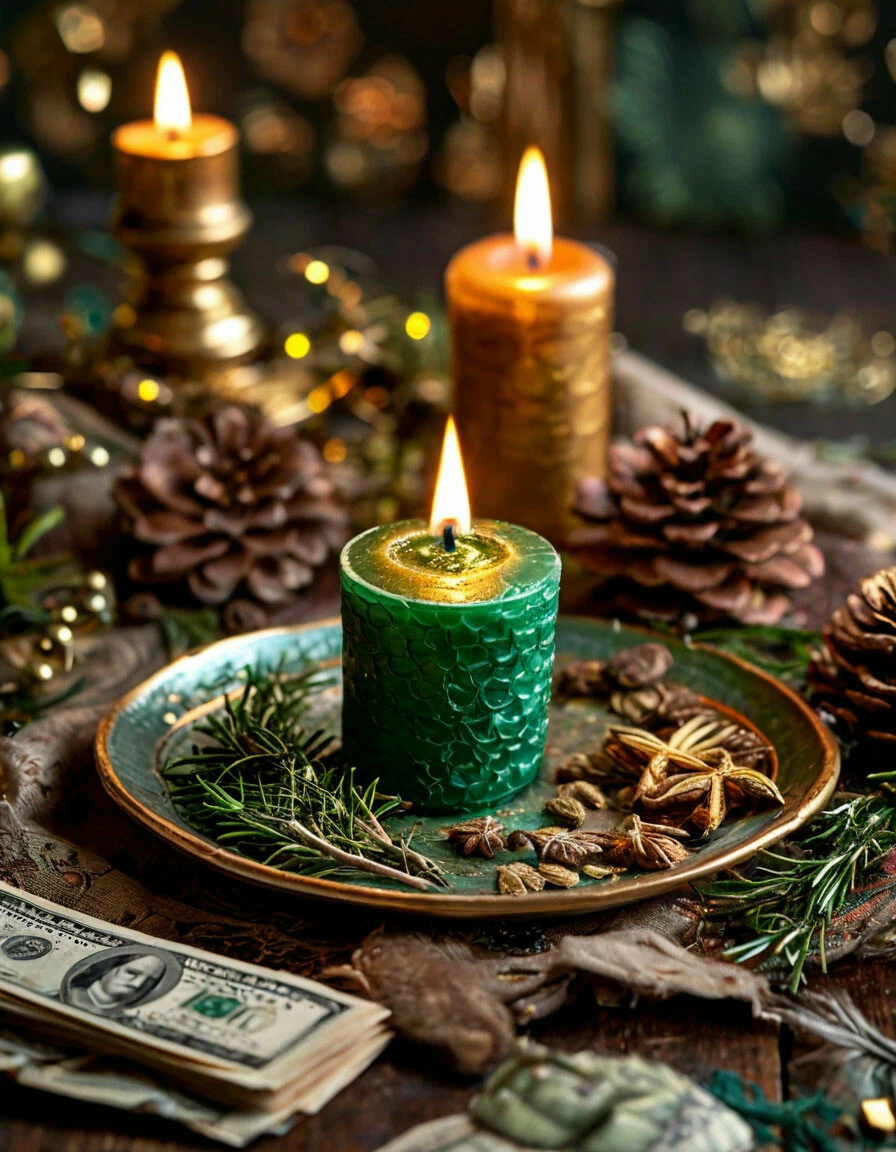 Цвет свечи указывает на то, что мы хотим привлечь в свою жизнь. Зеленый или золотой цвет идеально подойдет для проведения денежного ритуала. Слово «деньги» также можно нанести на свечу, чтобы укрепить уверенность. Поставьте свечу на тарелку, чтобы воск не растаял. Тарелка также служит для приношений, и в нее можно добавить некоторые элементы и травы, чтобы усилить магию. Любимые травы, используемые в денежной магии, - базилик, ромашка и мята, а такие специи, как корица, также приветствуются в этом магическом эксперименте. Разложите вокруг тарелки травы, банкноты, украшения или предметы, представляющие для вас материальную ценность. Представьте, как деньги приходят к вам. Получите четкое представление о том, где, как, с помощью чего, в какой форме вы будете привлекать деньги в свою жизнь. Когда вы закончите призывать деньги, поблагодарите Вселенную. Визуализируйте, как ваша просьба уходит от вас в космос. Также поблагодарите стихии за их участие и подаренное вам благополучие.