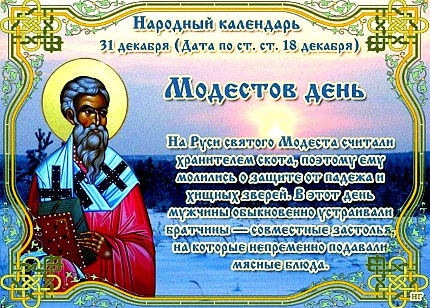 Во вторник 31 декабря 2024 года Православная церковь почитает память святителя Модеста Иерусалимского, рожденного на территории Малой Азии в христианской семье. Влечение к строгой иноческой жизни он почувствовал с юных лет. В молодые годы принял монашеский постриг.