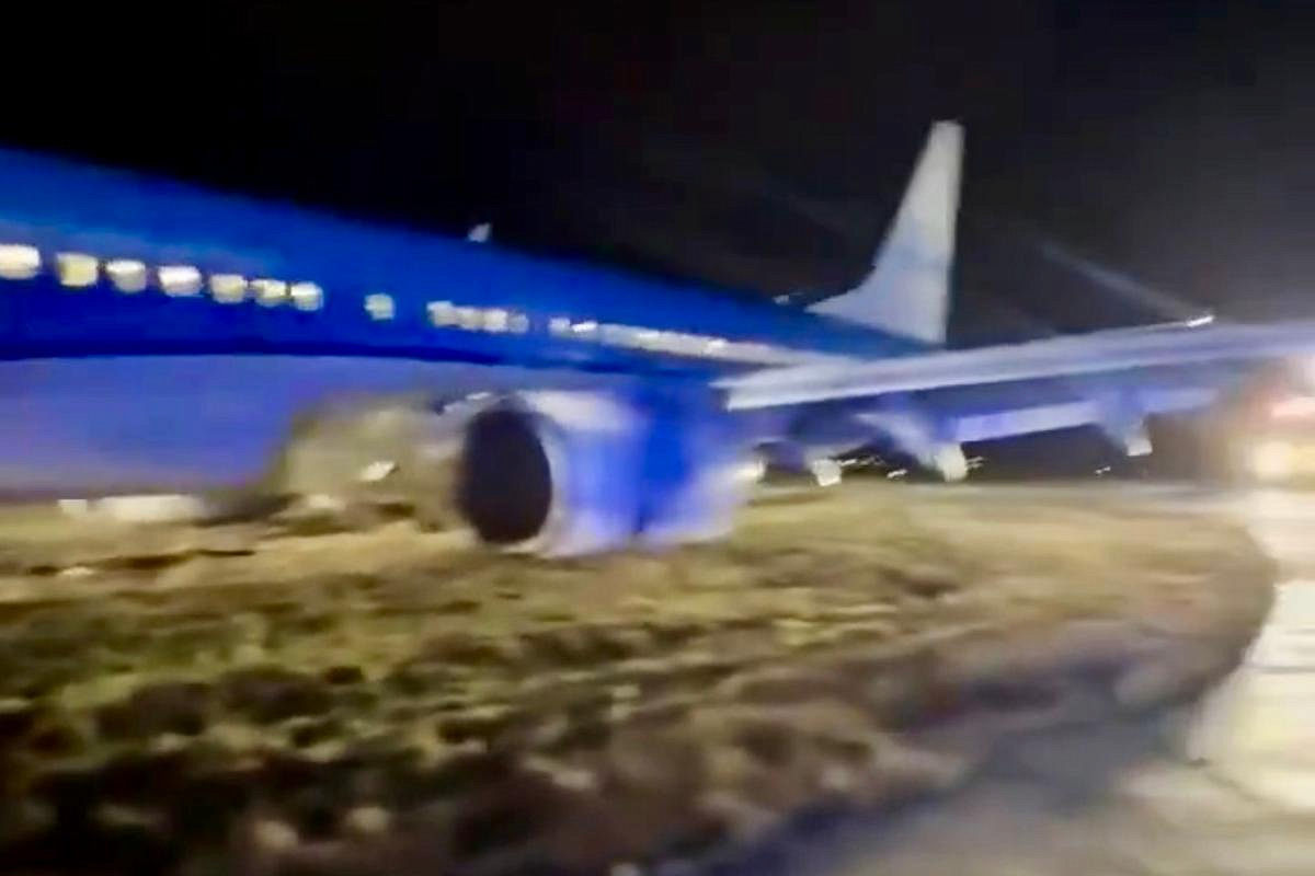 Во время посадки самолёт выкатился со взлётно-посадочной полосы и остановился на мягкой траве.