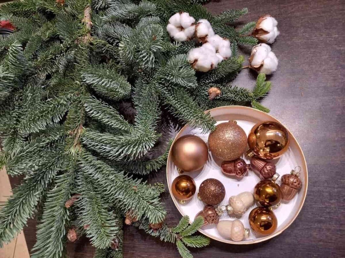 Всё это можно получить, если своими руками создать рождественский венок из нобилиса. За подробным мастер-классом корреспондент «Дзержинских ведомостей» обратилась к известному дзержинскому декоратору, флористу салона «Дашкины цветы» Наталье Киляевой. Новогодний или Рождественский венок – хорошая альтернатива живой ёлке, которую не все из-за определенных обстоятельств любят ставить. Отмечу, вещь, сделанная своими руками, с любовью и теплом, приобретает всегда положительную энергетику. Изготовление венка диаметром 25 сантиметров займет примерно один час. Для него нам понадобятся: около двух метров прочной проволоки для основы, ветки нобилиса, кипарисовика, ели или других хвойных растений, новогодние шары и елочные игрушки, коробочки натурального хлопка, шпагат, секатор, ножницы, клеевой пистолет. Для декорирования можно использовать атласные ленты, шишки и любые тематические предметы. Ветви нобилиса в венке предпочтительнее еще потому, что это хвойное растение практически не осыпается и