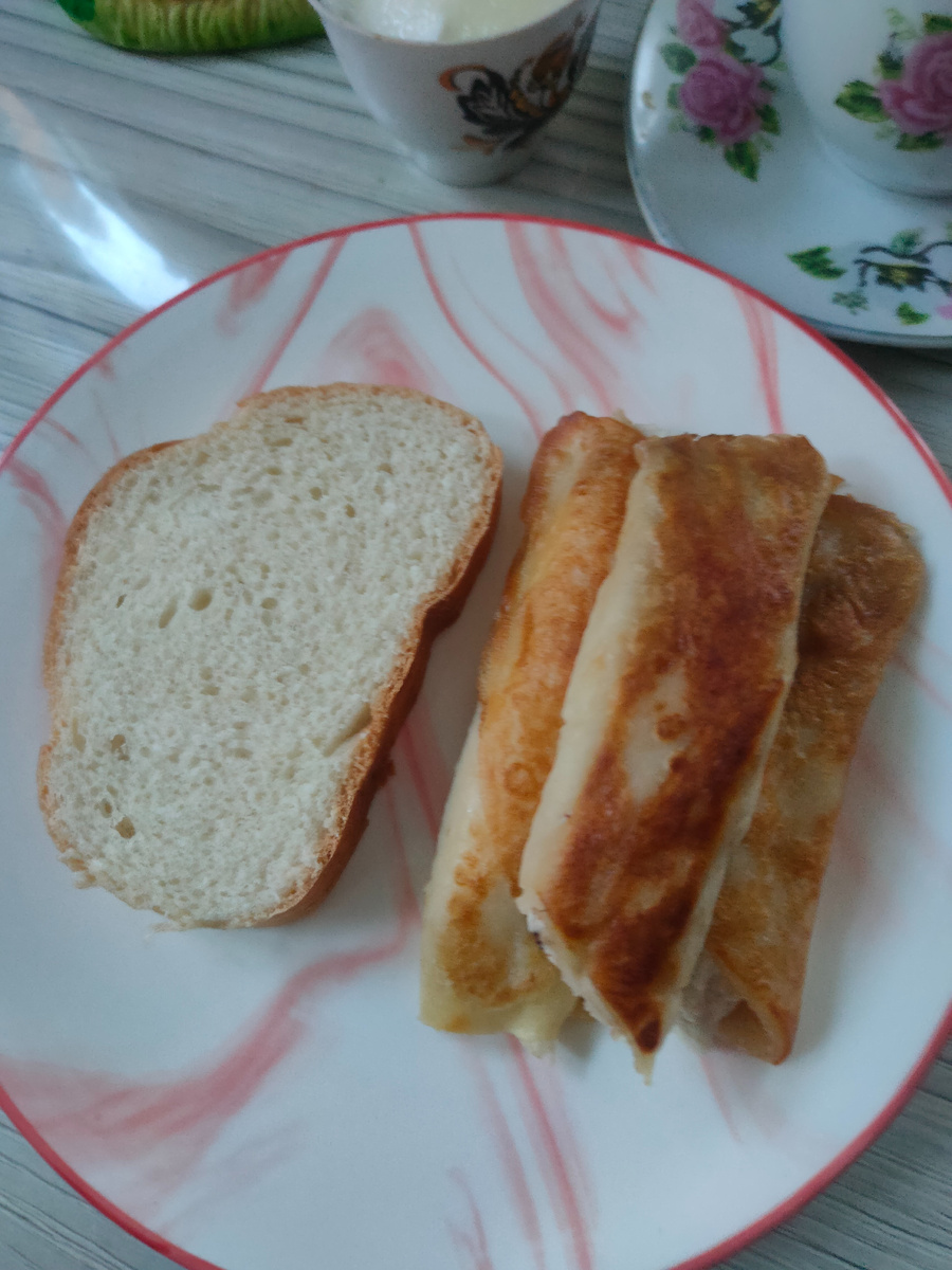 Пусть у Вас все будет хорошо: и утро доброе, и день радостный, и вечер спокойный, и настроение хорошее, новости добрые, и здоровье крепкое, и в кошельке звенело! Меня зовут Надежда, и я приглашаю Вас на мою кухню, где покажу Вам наше меню на день. Вот и наступила суббота. Планов на сегодня громадье: надо сделать кое - какие заготовки на Рождественские каникулы, хотела встать пораньше, но опять не получилось. Завтрак: фаршированные блины с творогом и изюмом, достала из заморозки еще вечером, а утром обжарила на сковородке, сметана с сахаром, которую ела с кусочком батона. Сегодня наконец - то смолола зерновой кофе для заваривания в турке, После завтрака отправилась в магазин, закончился хлеб, я прекрасно без него обхожусь, а вот муж почти все ест с хлебом. Поход в магазин одним хлебом не обошелся, купила следующие продукты: творог зерненый 2 баночки по 25 рублей, семечки подсолнечника по 15 рублей. хлеб - 32 рубля, сосиски Молочные 285 г за 130 рублей, яйцо куриное - 111 рублей, молоко