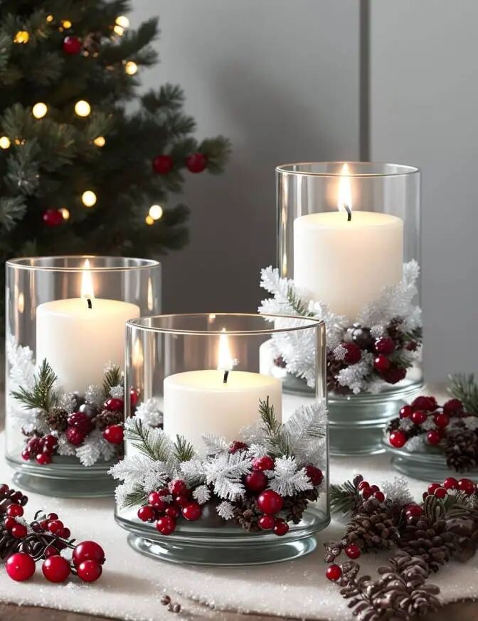 Не знаю, как у вас, а у меня дома всегда есть запас свечей. И на случай отключения электричества, и для красоты. Если добавить к свечам немного хвои и шишек, получаются замечательные новогодние композиции.