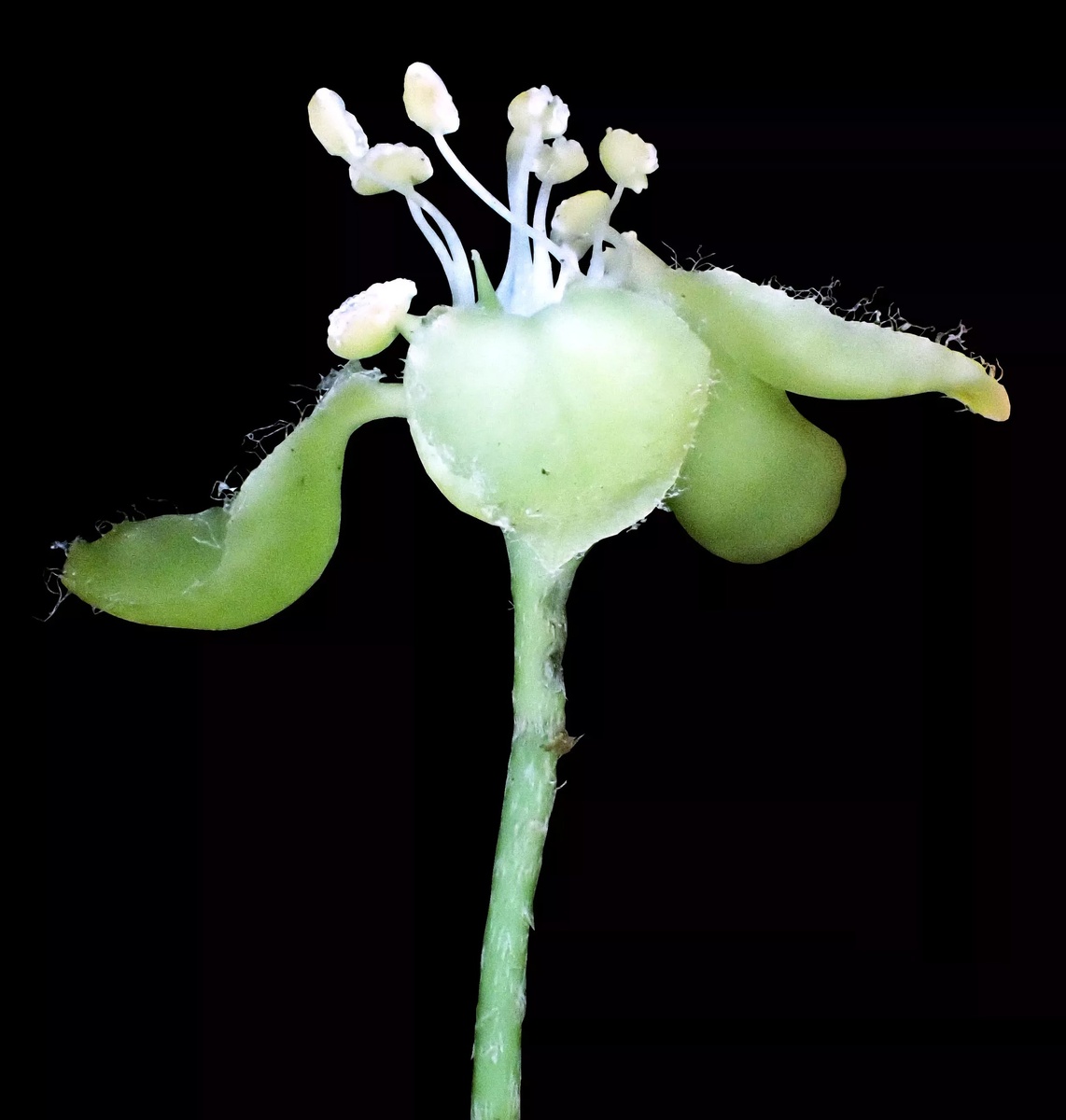 Chlorohiptage vietnamensis (семейство Мальпигиевые, Malpighiaceae) – новый род и вид лиан, эндемик субтропических широколиственных лесов и известняковых гор Вьетнама (известны две популяции). Зеленые цветки уникальны для ее семейства – обычно они желтые, ну или бело-желтые, как у Hiptage (родовое имя новинки означает «зеленый хиптаге»). Ботаники пока не знают, какое насекомое опыляет данное растение. А вы?