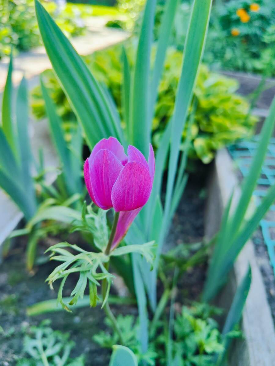 Мне очень нравится анемона корончатая. Каждый год весной покупаю её клубнелуковицы и высаживаю в сад. Она плохо зимует. Сами растения могут выжить, но вот цветения, как правило, не будет. Весной я была удивлена, что на одной из перезимовавших анемон появился цветок. Он распустился в конце мая и цвёл довольно долго. Может быть, в более тёплом климате анемона корончатая ведёт себя более покладисто, но в Подмосковье она капризничает. Или ей не нравится микроклимат именно моего участка. Как бы то ни было, мне трудно приручить эту капризную красавицу. А так как мне очень хочется иметь её в саду, я выработала такую схему. Весной дожидаюсь распродаж в сетевых магазинах и покупаю упаковку-другую клубней анемоны. Клубни у неё сухие, лежкость у них хорошая, поэтому можно ждать конец распродажи без опасения, что они не долежат и испортятся. Получается, я веду эту культуру как однолетнюю. Это позволительно, так как стоят упаковки недорого. Единственный минус такого способа - это позднее цветение