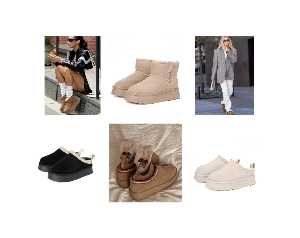 Отдельного внимания заслуживают угги тёмных оттенков. Безусловно, более практичные и очень эффектные. С оверсайзом и "total black". Несмотря на удобство модели, высокая, но комфортная подошва одновременно греет и прибавляет несколько сантиметров роста.
