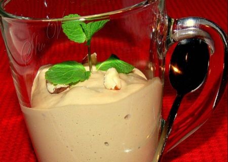 Очень нравится мне этот десерт. Он хорош для любого случая. Им можно завершить воскресный семейный обед или подать в завершение званного ужина. И для праздничного застолья он тоже очень хорош, так как делается быстро, а результат получается достойный. Желатин насыпать в чашку и залить небольшим количеством холодной кипячёной воды (20мл.), оставить на 10 минут набухать. В сотейнике подогреть молоко, добавить щепотку соли и кофе, размешать и снять с огня. Желток растереть с сахаром и ванилином и при постоянном взбивании (я взбиваю миксером, чтобы желток не сварился) нагревать на водяной бане примерно 1-2 минуты. Затем, не прекращая взбивать, тонкой струйкой влить в желтковую массу подогретое молоко с кофе, продолжать взбивать ещё 2-3 минуты. После чего добавить набухший желатин (не распуская его предварительно) и продолжая взбивать прогреть крем на водяной бане до полного растворения желатина ещё 1-2 минуты. Снять крем с горячей бани, влить ликёр и переставить на холодную баню (в миску с