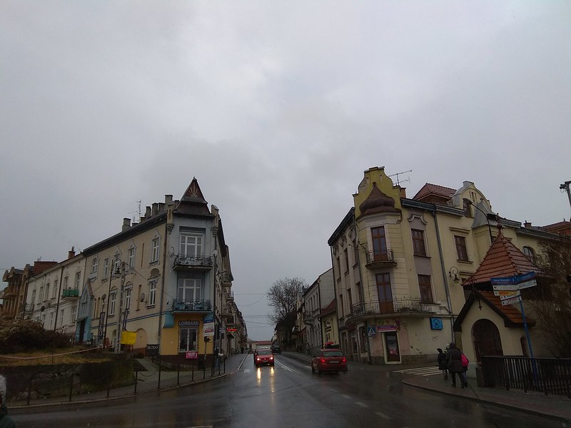 Сегодня переместимся в Польшу и посмотрим город Новый Сонч, который находится на юго-востоке страны, в Малопольском воеводстве. Новый Сонч - по нашим меркам город районного масштаба с населением около 85 тыс. человек (сопоставим с белорусским Полоцком). Хотя до 1999 г. он был центром собственного воеводства, ликвидированного в результате административной реформы. Город древний, отсчитывает историю с 13 века, какое-то время играл роль "дублера" Кракова, т.е. здесь был королевский замок, от которого, правда, остались лишь руины. Бывал здесь и литовский князь Ягайло, он же польский король Владислав II (именно под этим именем его знают поляки). Собственно, с этими землями во многом связано становление династии Ягеллонов и польско-литовской унии, определившей историю в том числе и Белоруссии на века вперёд. Львовская улица. Львов для этих земель был вторым центром притяжения, альтернативным Кракову. После разделов Речи Посполитой эта часть Польши оказалась под австрийским владычеством. Собс