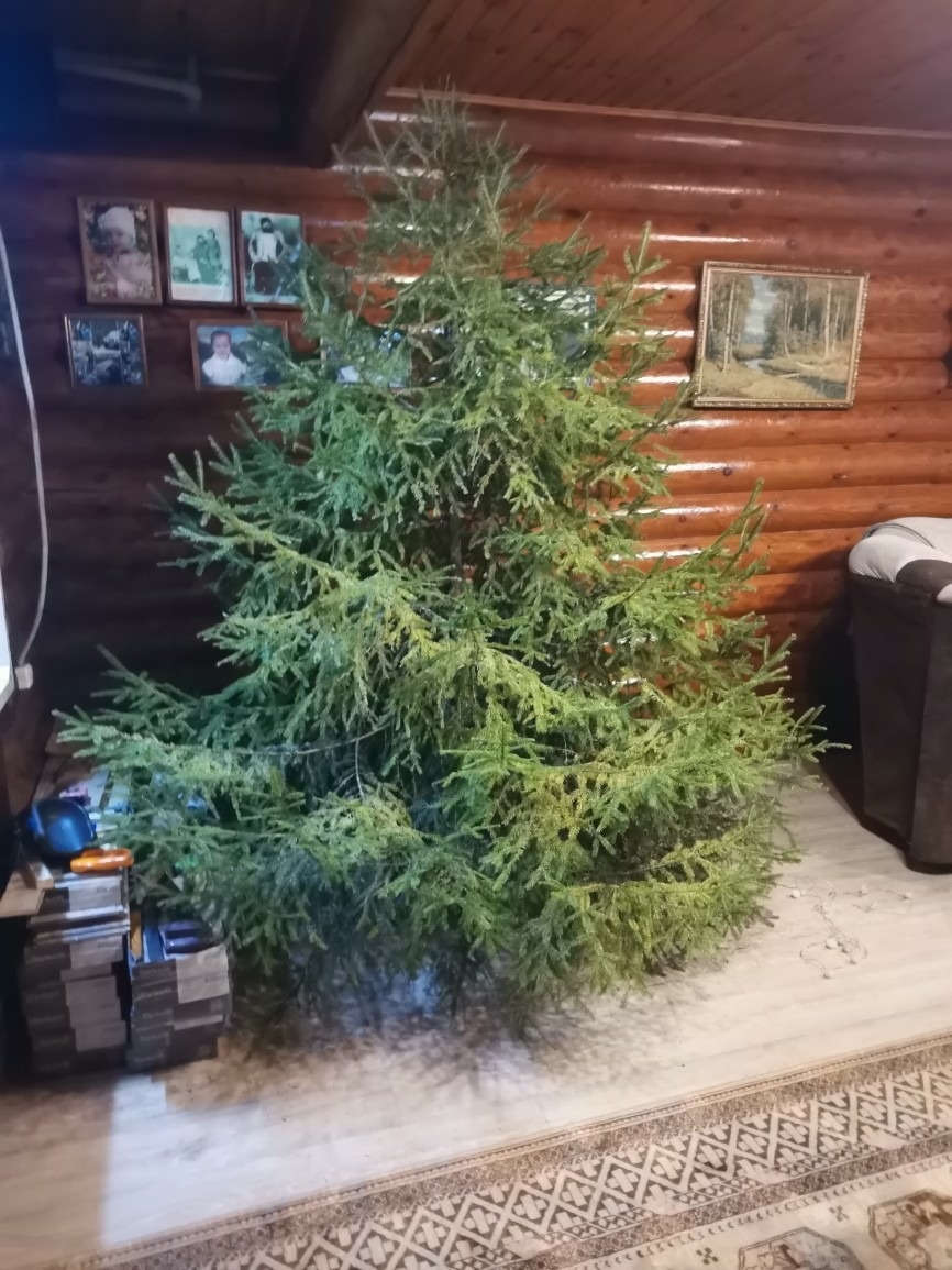А теперь про елки, у меня дома украшены три елки.