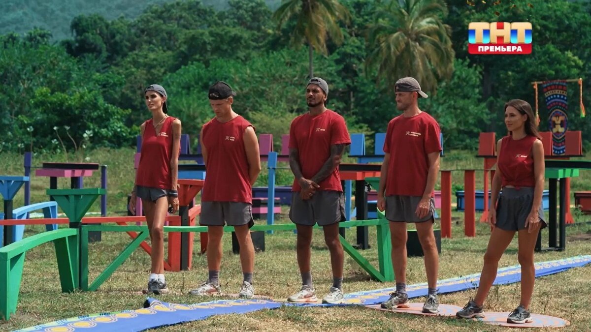 Перед финальным испытанием участникам предоставили возможность пополнить призовой фонд – к началу выпуска у них было семь миллионов 20 тысяч рублей. Чтобы заработать две монеты – 400 тысяч рублей, одному из них нужно было освоить игру на колумбийском музыкальном инструменте – маримбуле. Конечно, для испытания был выбран Натан, и рэперу удалось оправдать надежды команды и принести выигрыш. Кадр из шоу «Звезды в джунглях» Финалисты надеялись, что им также удастся забрать максимальный приз – два миллиона рублей – на большом испытании, но ведущие быстро их разочаровали. Как выяснилось, это испытание было не за монеты, а на выбивание. Те, кто финишировали последними, выбывали из шоу. В суперфинал могли попасть только три участника. Звездам нужно было пройти полосу препятствий – на первом этапе они искали в песке мешочки, чтобы потом сбить ими мишени с цифрами – кодом от ящика с костями домино. На следующем этапе они расставляли кости домино так, чтобы последняя кость, упав, раскрыла очередн