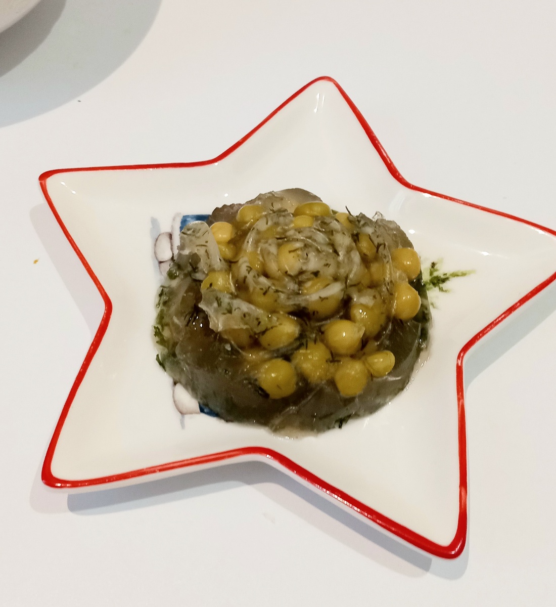 Воскресенье, 29 декабря. Сегодня все встали около 10. Было так здорово, что не нужно никуда спешить. Начинаю вспоминать вкус кайфовой жизни, когда все делаешь в удовольствие, а не потому что НАДО. Неспешно позавтракала. Вчера остался бульон от холодца. И я сделала заливное. Видела что-то подобное у кого-то в Дзене. Вот и вспомнилось вовремя. Сегодня попробовала. Вполне съедобные, хоть и без мяса. Для завтрака - самое то👍. После завтрака наряжали ёлку. Но не нашли гирлянды, а их нужно вешать в первую очередь. Решили пока наряжать так. Женя сказал, что потом сможет повесить. Сегодня вешали наши шары. С удовольствием и ностальгией перебирали всю нашу коллекцию. Этот шарик был первым. Это моя подруга Лена - очень талантливая во многих областях женщина, нарисовала меня и Лерочку в образе мышек в год Мышки. Идея нам очень понравилась. Но Быка мы не помню почему пропустили. Наверное, просто денег свободных у меня в тот год не было. Потом у нас появился вот такой. Наш папа заядлый ры