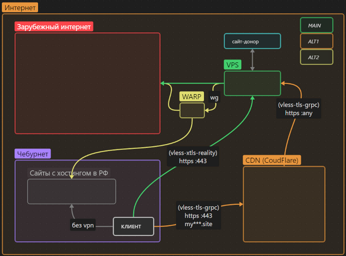Универсальное решение: VPS в Европе, панель 3X-UI для управление Xray, прокси VLESS-Reality для прямого соединения, прокси VLESS-tls-grpc для запасного соединения через CDN CludFlare, российский трафик напрямую - либо через цепочку VPS->WARP, доступ к заблокированным в Европе сервисам - через цепочку VPS->WARP