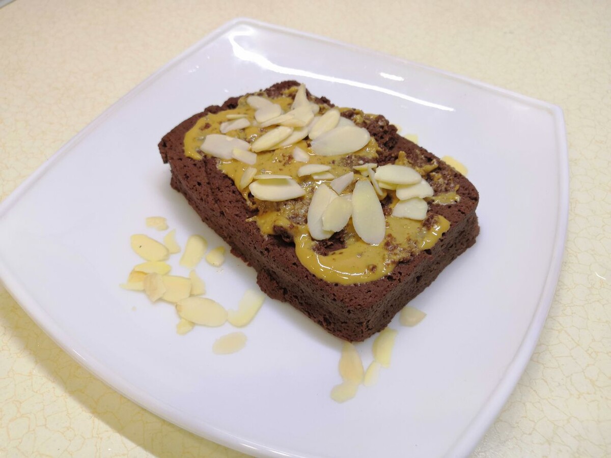 Часто готовлю такой кекс, когда хочется сладкого. Ведь калорийность просто радует КБЖУ на все без украшения: 211.4/11.8/8.8/17.4 Ингредиенты: 1. Яблоко почистить и нарезать. Выложить в блендер. Добавить яйцо, какао, разрыхлитель и подсластитель. Пробить блендером. 2. Выложить в форму для микроволновки и запекать в микроволновке 4 минуты. Мощность моей - 700. Вы ориентируйтесь по своей. 3. Если по время вынимания кекс будет разваливаться, ничего страшного, достаньте и приложите все вместе. Кекс мягкий и податливый. Легко формируется. Я украсила арахисовой пастой и миндальными лепестками.