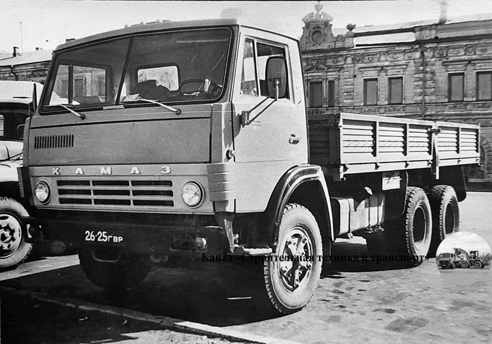 На дворе был 1982 год, кода мне впервые довелось сфотографировать КАМАЗ. Хотя производство на Камском автозаводе было запущено 6-ю годами ранее, КАМАЗы в ту пору встречались не часто, не так, как сейчас, тогда это была еще диковинка. По части тяжелых грузовиков, по-прежнему, привычнее были МАЗы и КРАЗы. Попавшийся мне в Горьком КАМАЗ-5320 был классической в те времена для грузовиков этой модели цветовой гаммы – голубая кабина с белой решеткой и синий кузов. Одно из характерных внешних отличий: на дверях вместо привычного прямоугольного шильдика с цифровым обозначением модели – набор из отдельных цифр. Еще одна внешняя особенность – светлые (а не привычные черные) буквы КАМАЗ. Вроде металлизированные, уже не помню. Если кто знает, пишите в комментариях.