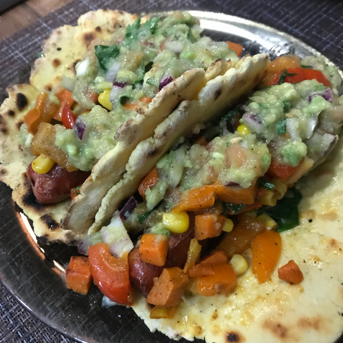 6️. на тортилью выкладываем сосиску, овощи и соус ✅готово Вкусно, сытно и остренько. Рецепты тортильи и гуакамоле также на канале